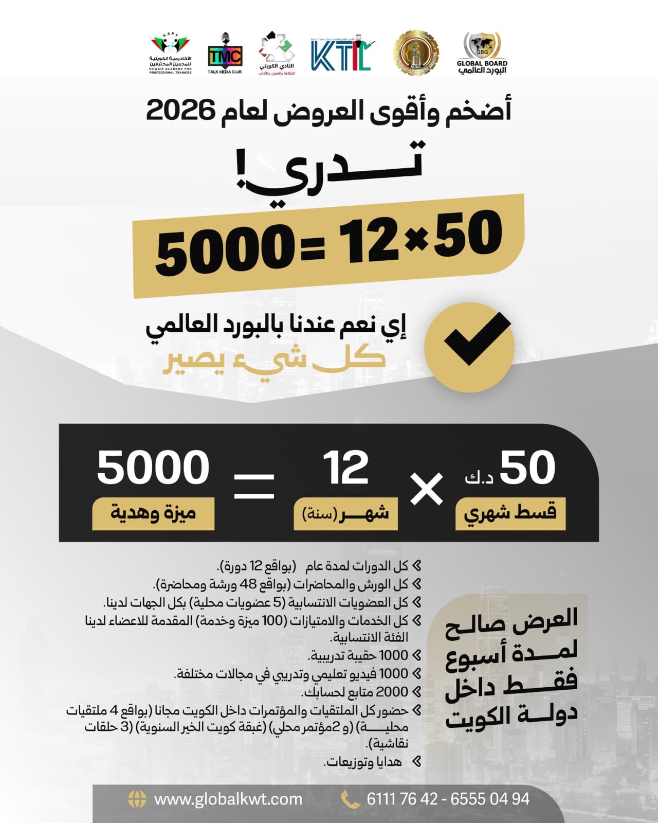 نحن في البورد العالمي – جلوبال بورد نعتـزم توفــــير برامــج أكاديمية ومهنية وحرفية وصناعية عالية الجـودة ومناسبـة للأشخـص الذين يرغبون في التأثيـر على المجتمع بطريقة إيجابية وفعالة لتحقيق الأدوار التي يتم تدريبهـم عليهـا كمركز يهدف إلـى تحسين وتطويـر الـذات ، وتبــادل القيم والمعرفة في المجتمع وصناعة المدربين والأحداث التدريبية.